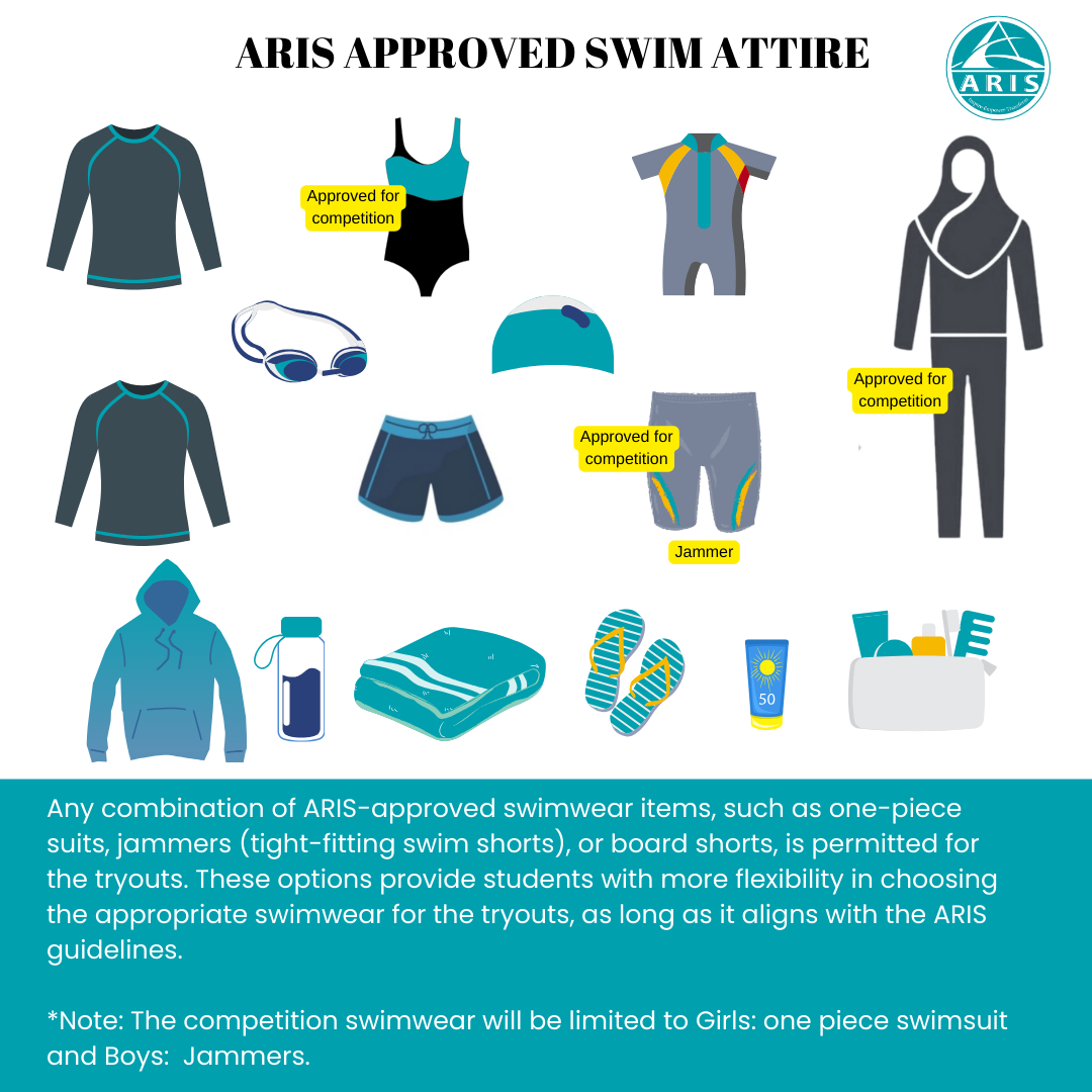 Additional Gear: All swimmers must bring their swim cap, goggles, flip flops, towel, cover-up/hoodie, water bottle, and any shower toiletries such as (towel, shampoo, conditioner, body wash, sunscreen). Proper swimming attire and equipment are required to try out. During the tryouts, swimmers will be evaluated on their freestyle speed, stroke technique, and endurance. For health, safety, and hygiene reasons, competition swimwear will be sold directly to select athletes for personal use.